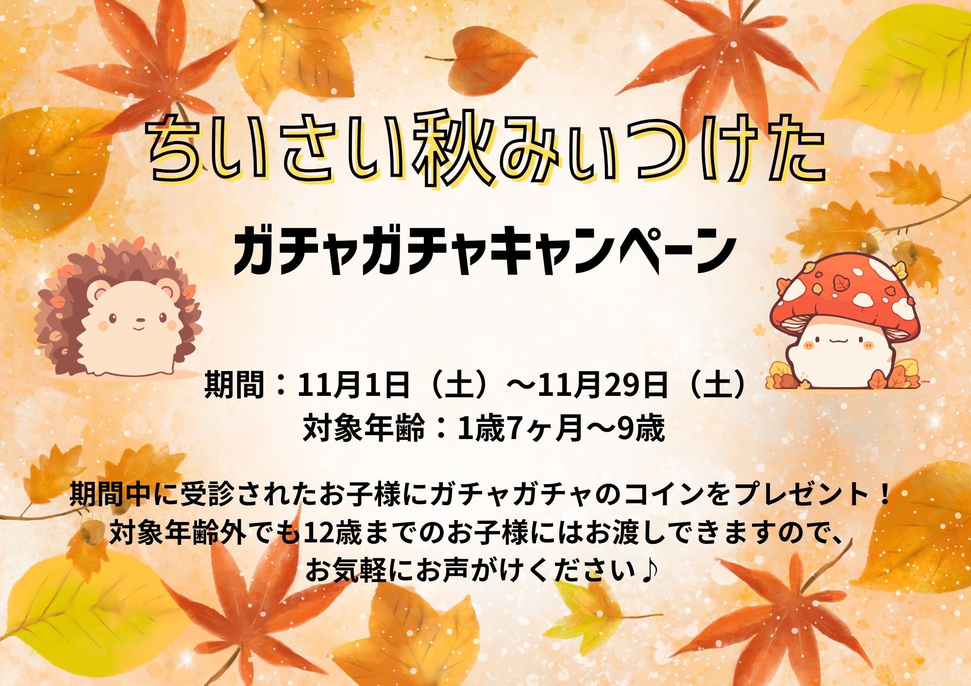 11月も引き続きガチャガチャイベントを開催致します♪