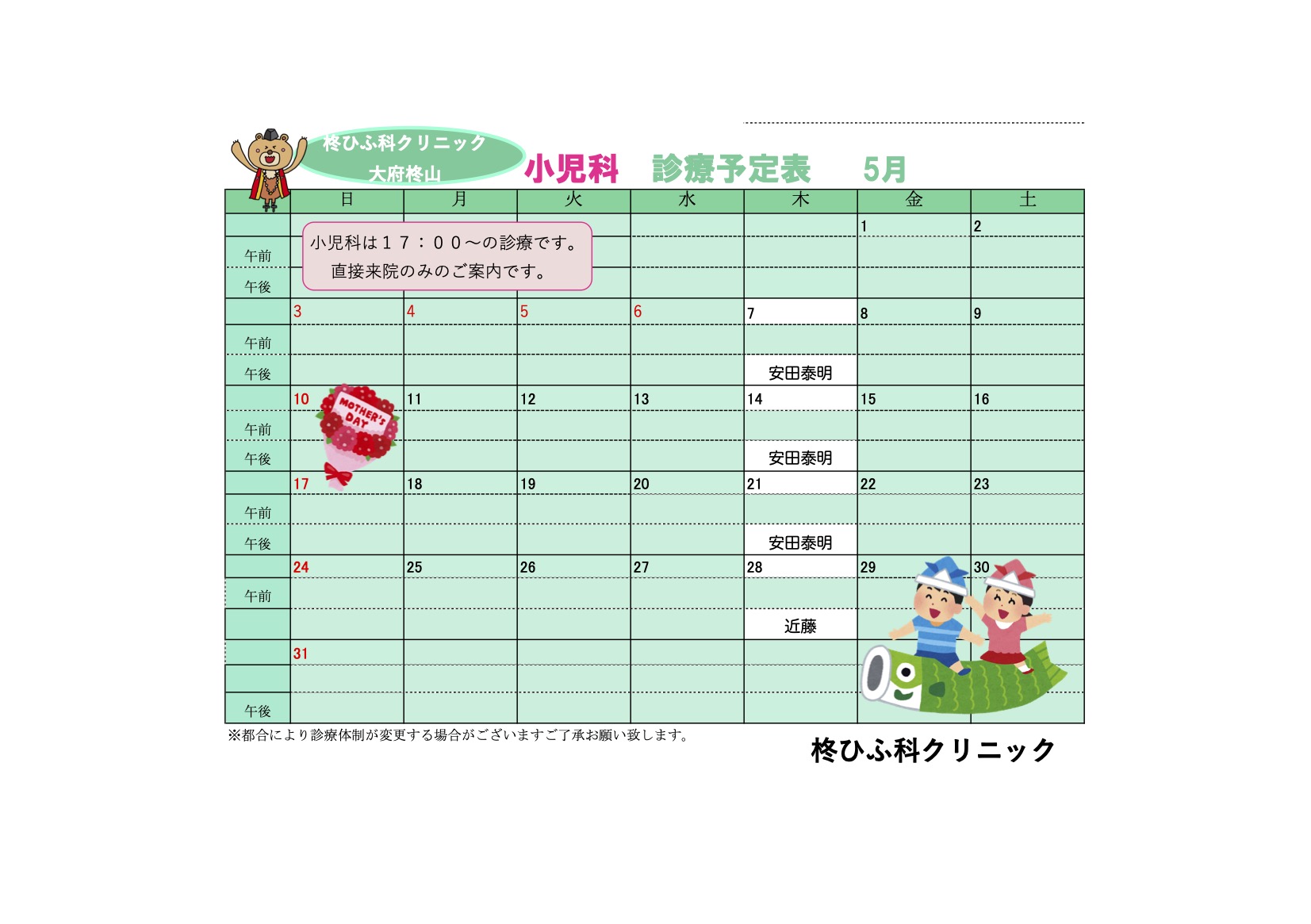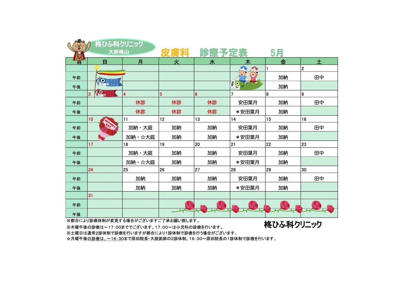 5月の診療予定表です。 ご受診の際にご参考になさってください。